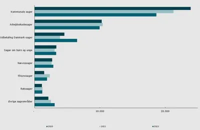 Langt de fleste af de sager, Ankestyrelsen afgjorde i 2022, er klager over afgørelser, som er truffet af landets 98 kommuner. De kommunale social- og beskæftigelsessager udgjorde ca. 40 procent af det samlede antal sager, som blev afgjort i Ankestyrelsen, mens klager over afgørelser truffet af Arbejdsmarkedets Erhvervssikring og Udbetaling Danmark udgjorde henholdsvis ca. 20 og ca. 15 procent af alle klagesager i Ankestyrelsen i 2022.